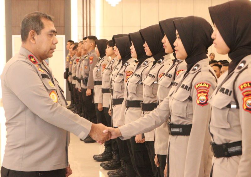 “ikuti pembekalan dengan sebaik-baiknya. Diharapkan seluruh polisi Polda Bengkulu yang baru dilantik dapat menjadi insan Polri yang presisi yaitu prediktif, responsibilitas dan transparansi berkeadilan sehingga dapat membawa Polri menjadi lebih baik seiring perkembangan zaman yang semakin modern dan penuh dengan tantangan serta permasalahan yang sangat komplek,” tegasnya.