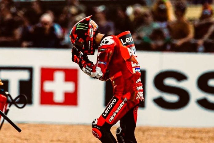 CoverPublik.com – Pecco Bagnaia harus menelan hasil mengecewakan usai gagal finis pada balapan sprint MotoGP Prancis 2025. Pembalap tim Ducati Lenovo itu mengalami kecelakaan saat baru memasuki lap awal di tikungan ikonik Dunlop Chicane, sirkuit Le Mans, pada Sabtu (10/5/2025).