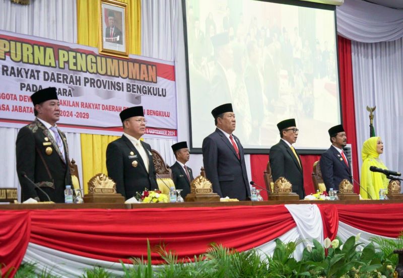 Sebanyak 45 anggota dewan provinsi yang baru, hasil Pemilu 2024, dilantik dan diambil sumpah jabatannya oleh Wakil Ketua Pengadilan Tinggi Bengkulu. Usai dilantik, dilakukan penandatanganan SK Pelantikan serta penyematan tanda lencana dewan oleh Wakil Ketua Pengadilan Tinggi Bengkulu.