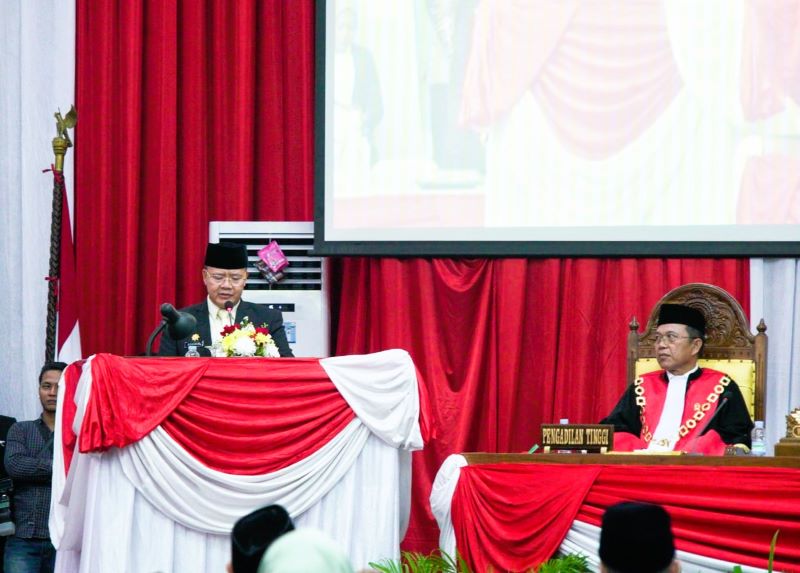 CoverPublik.com – Gubernur Bengkulu, Rohidin Mersyah, bersama istrinya, Derta Wahyulin Rohidin, menghadiri prosesi Pelantikan dan Pengucapan Sumpah dan Janji Anggota DPRD Provinsi Bengkulu Masa Bhakti 2024-2029 pada Rapat Paripurna DPRD Provinsi Bengkulu, di Ruang Rapat Paripurna, Senin (2/9).