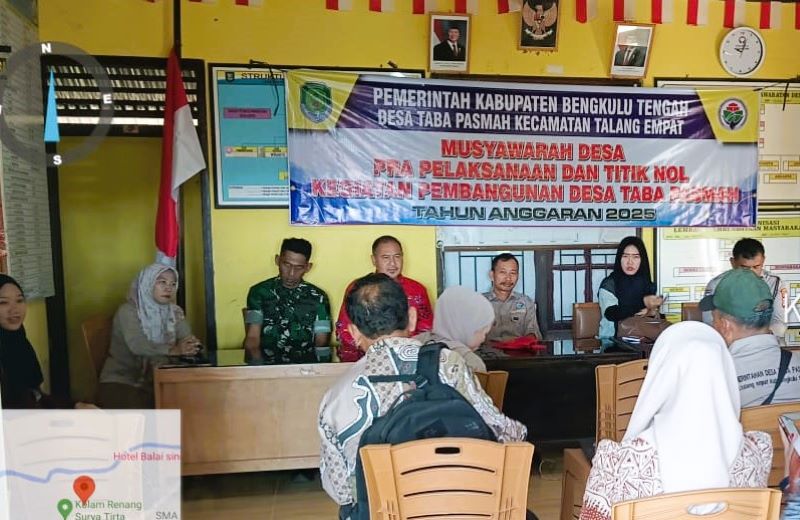 Bengkulu Tengah, CoverPublik.com – Pemerintah Desa Taba Pasmah, Kecamatan Talang Empat, Kabupaten Bengkulu Tengah, Provinsi Bengkulu, melaksanakan Musyawarah Desa pra pelaksanaan kegiatan pekerjaan fisik pembangunan rehab Jembatan Geraha Besi dan pengoralan jalan desa. Musyawarah ini merupakan langkah awal sebelum pelaksanaan proyek yang telah direncanakan sesuai dengan hasil musyawarah desa sebelumnya.
