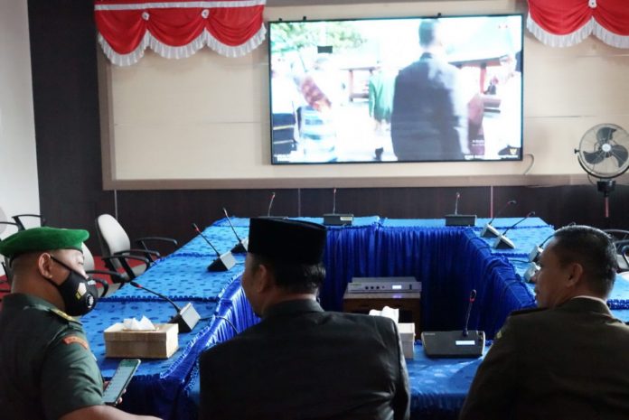 Kegiatan Upacara melalui zoom berlangsung di Ruang Rapat Bupati (RRB) Kabupaten Bengkulu Tengah. Rabu Pagi (1/6)