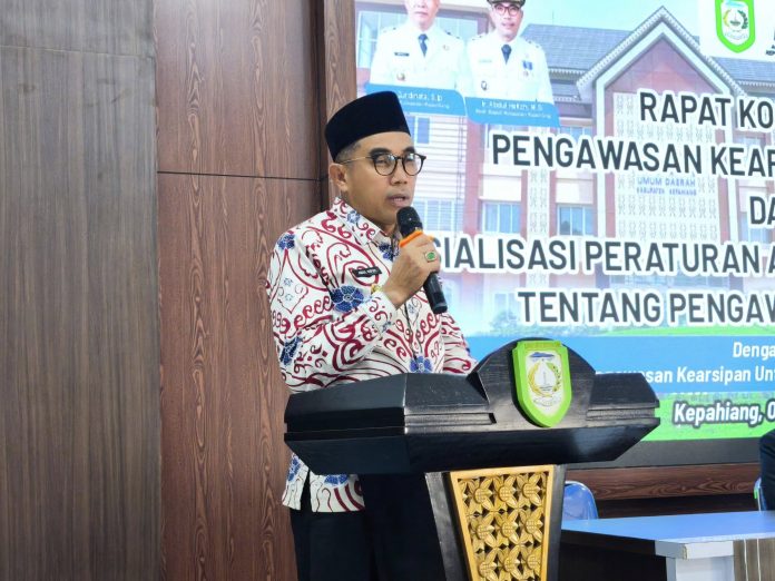 Kepahiang, CoverPublik.com – Pemerintah Kabupaten Kepahiang terus memperkuat sistem pengawasan dan tata kelola kearsipan seiring tuntutan transformasi digital. Upaya ini ditandai dengan digelarnya Rapat Koordinasi (Rakor) Pengawasan Kearsipan di Aula Command Centre, Rabu (6/8/2025), yang diikuti seluruh Organisasi Perangkat Daerah (OPD).
