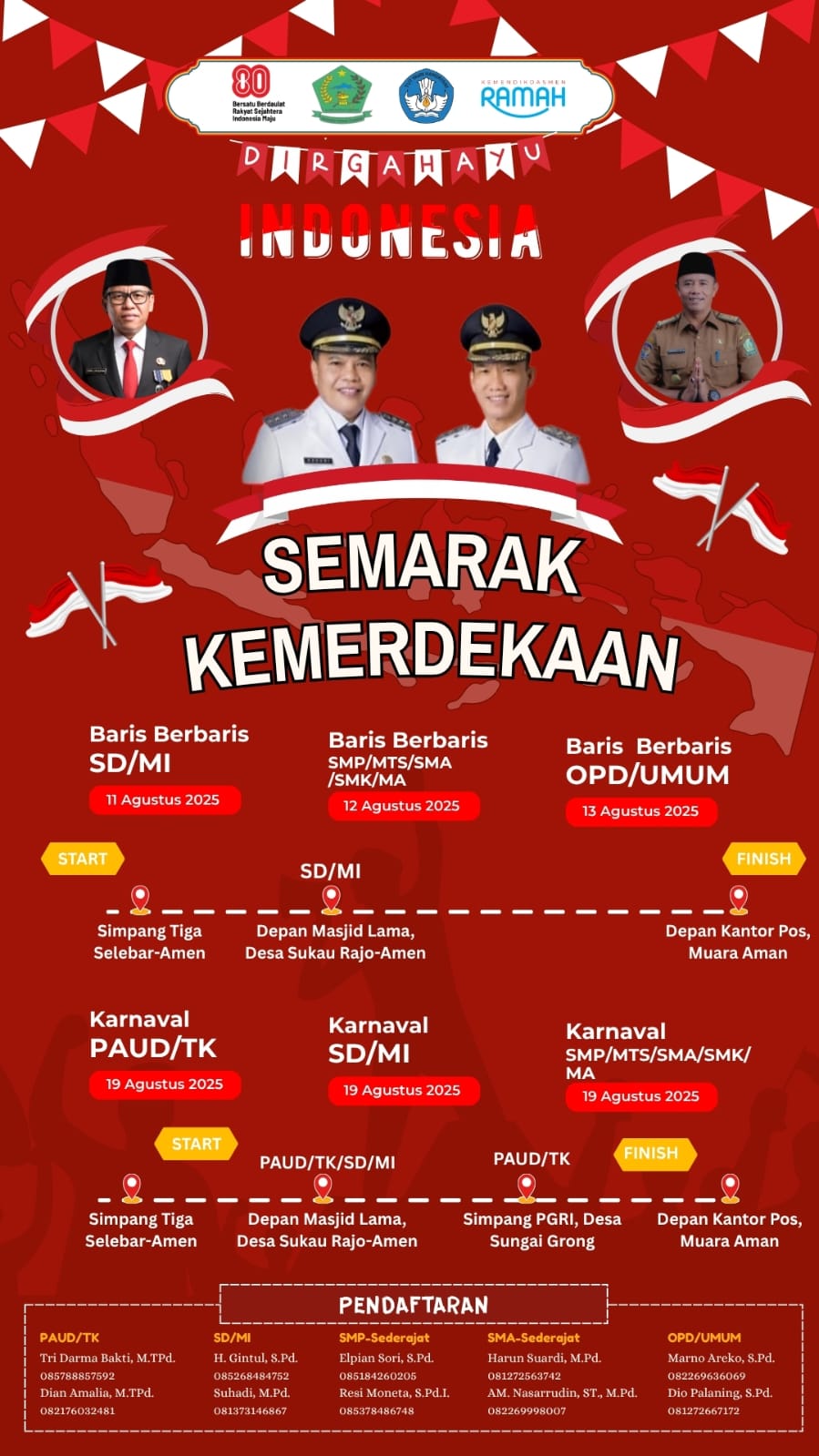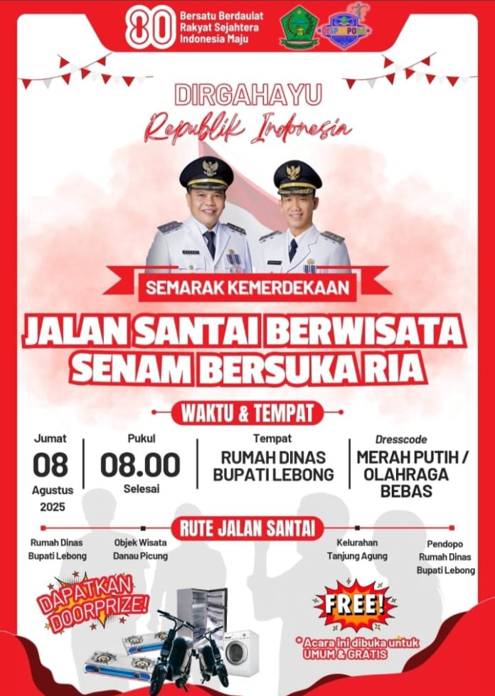 “Acara ini terbuka untuk umum, gratis, dan bertabur hadiah. Mari ramaikan dan jaga semangat kemerdekaan kita bersama,” ajak Kepala Disparpora Lebong.
