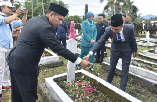 “Kita berdiri di sini bukan hanya untuk menabur bunga, tetapi juga menabur doa dan tekad untuk melanjutkan perjuangan mereka,” ujar Bupati Fikri.