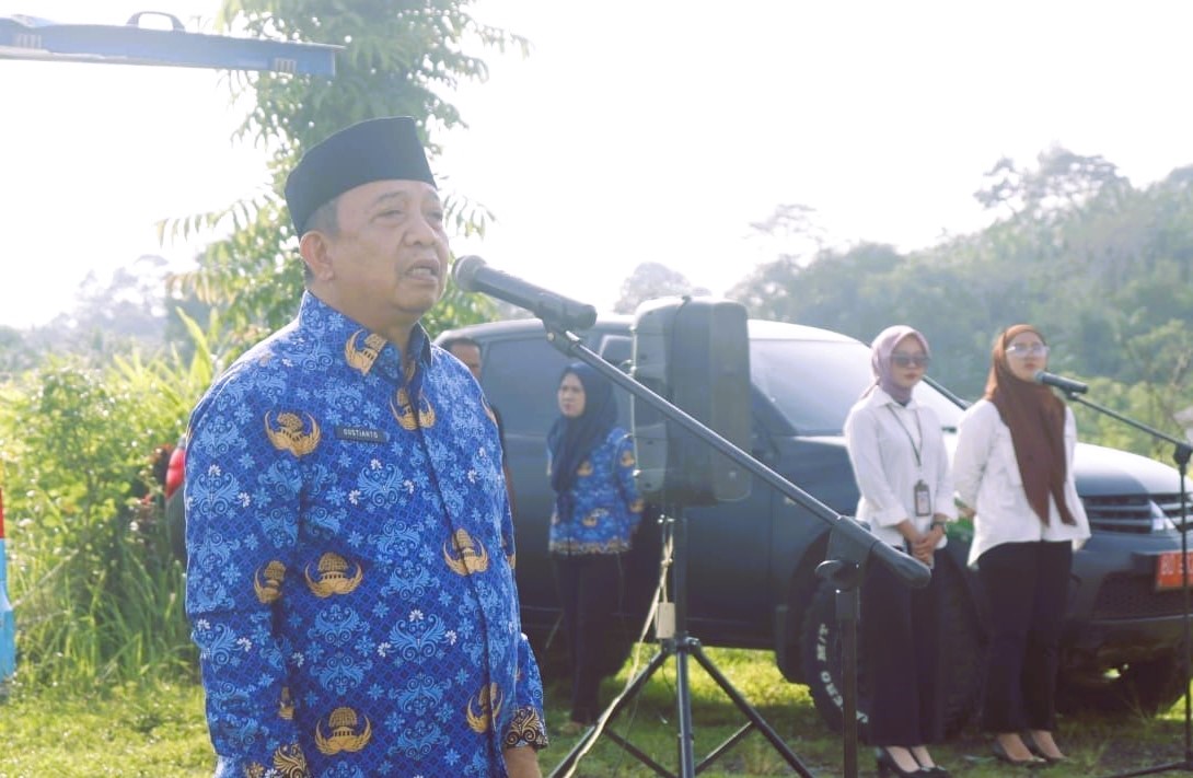 Wakil Bupati Seluma Drs. Gustianto bertindak sebagai pembina apel sat menyampaikan amanat
