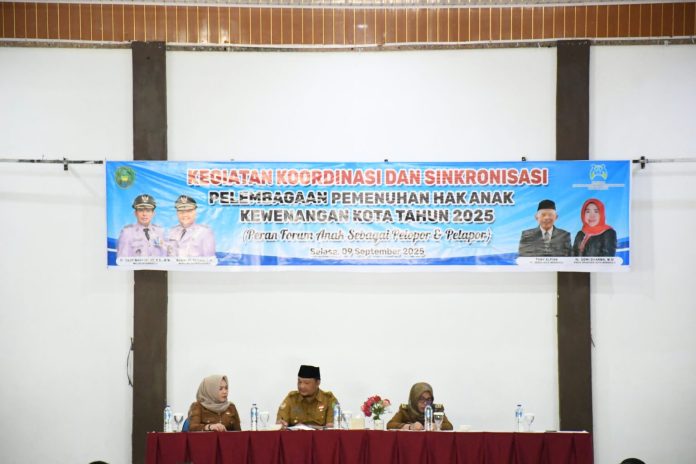 Hal itu ia sampaikan saat membuka kegiatan koordinasi dan sinkronisasi pelembagaan pemenuhan hak anak kewenangan kota tahun 2025 bertema “Peran Forum Anak sebagai Pelopor dan Pelapor” di Hotel Adeeva, Selasa (9/9/2025).