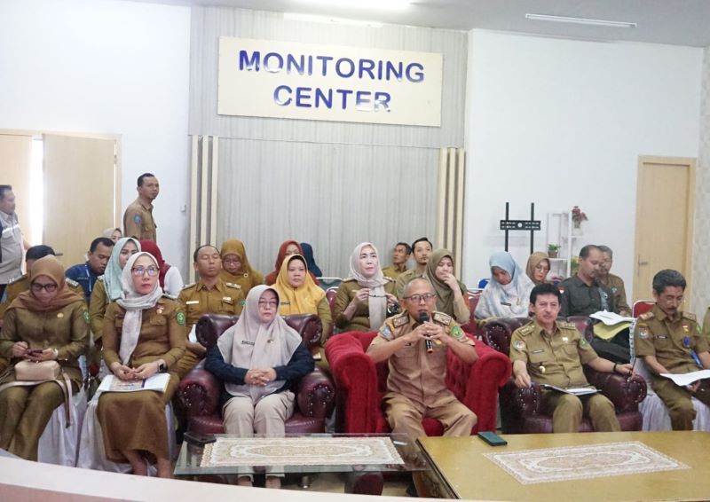 CoverPublik.com – Asisten III Setda Kota Bengkulu Tony Elfian didampingi Kepala Inspektorat Eka Rika Rino, Kepala Dinas Dukcapil Widodo, Kepala Dinas Kearsipan dan Perpustakaan Mukhlis, Sekretaris Diskominfo Afri Candriani dan beberapa pejabat lainnya mengikuti Zoom Meeting Penilaian Interviu Evaluasi SPBE 2024, di Ruang Monitoring Center Diskominfo, Selasa (15/10/2024).