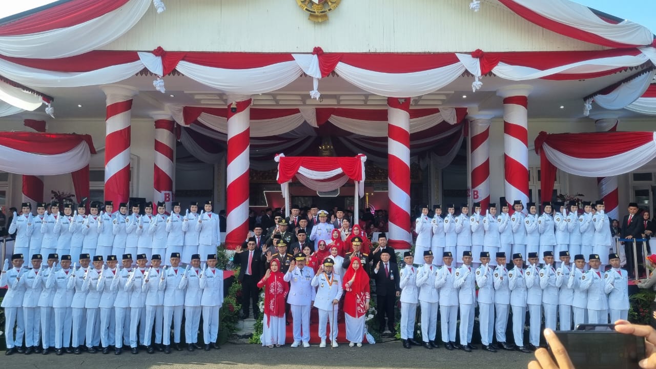 Bengkulu, CoverPublik.com – Di bawah langit cerah Minggu (17/8) pagi, Sang Merah Putih berkibar gagah di Lapangan Balai Raya Semarak, Kota Bengkulu, menjadi saksi sejarah perjalanan bangsa yang genap berusia 80 tahun. Upacara pengibaran bendera dalam rangka Hari Ulang Tahun (HUT) ke-80 Republik Indonesia berlangsung penuh khidmat.
