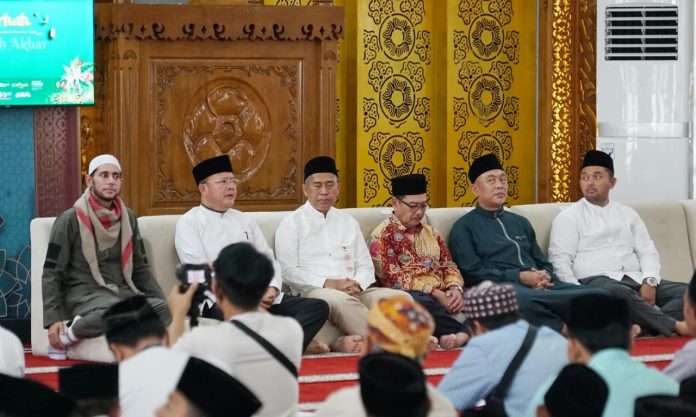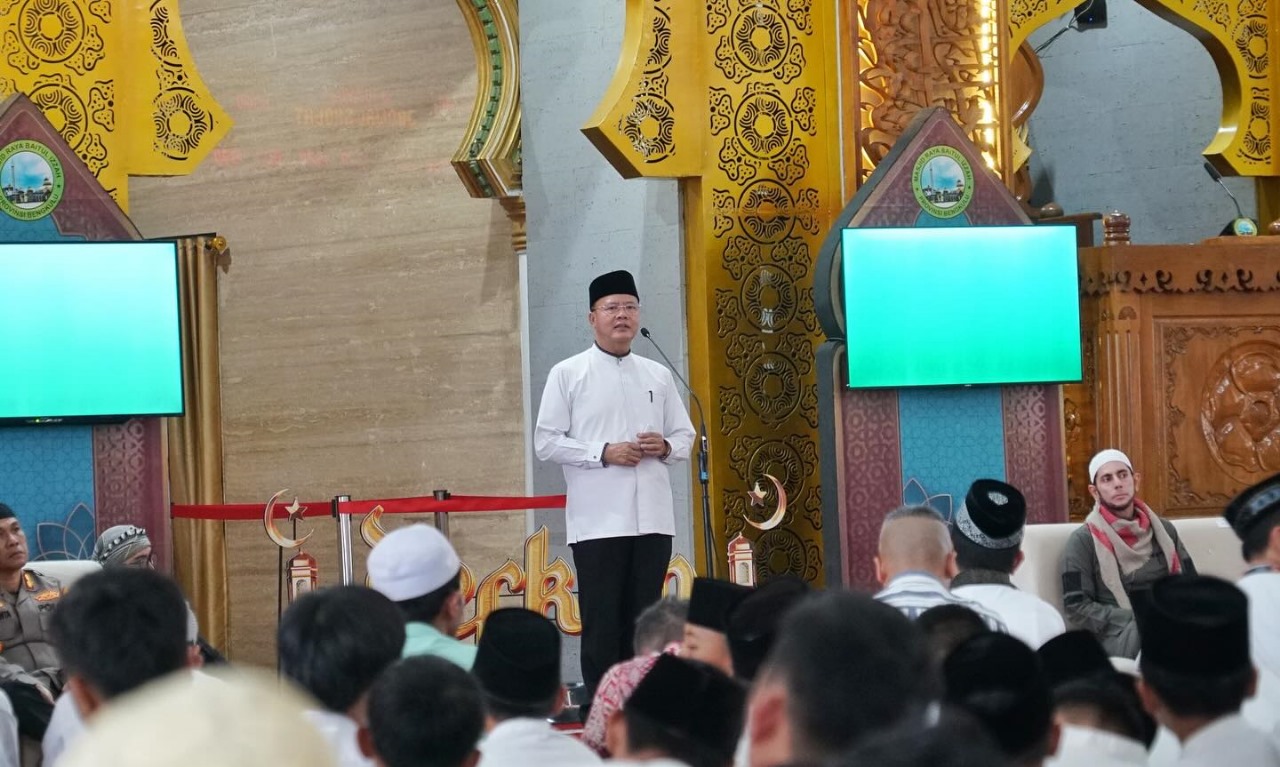 Gubernur Rohidin memberikan sambutan yang menekankan pentingnya membangun ekonomi yang berdasarkan pada nilai-nilai agama.