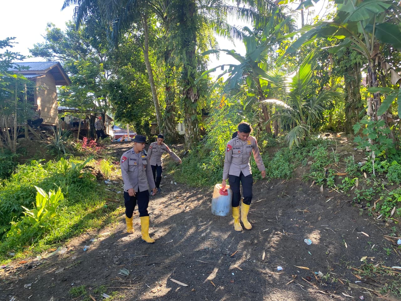 Dalam kegiatan tersebut, personel Brimob bergotong royong mengangkut kayu serta material dasar untuk membangun jembatan darurat. Jembatan ini sangat dibutuhkan masyarakat setempat karena menjadi akses utama penghubung antar desa yang sempat terputus akibat bencana.