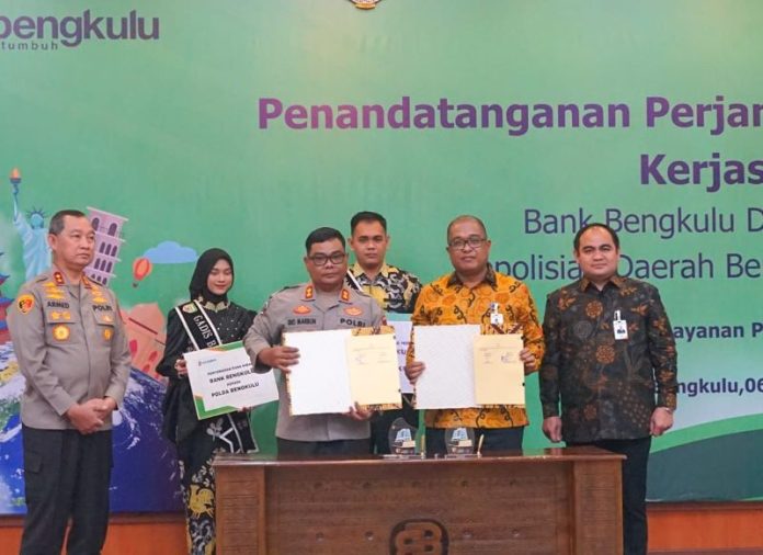 Perjanjian Kerja sama ini ditandatangani Direktur Utama Bank Bengkulu Beni Harjono dan Kapolda Bengkulu Irjen Pol Armed Wijaya yang disaksikan langsung Gubernur Bengkulu Rohidin Mersyah, yang dihadiri juga OJK Bengkulu, Bank Indonesia, BPK Bengkulu, Wakapolda Bengkulu, Perwakilan Kepala Pusat Keuangan POLRI, Kejati serta jajaran Komisaris dan Direksi Bank Bengkulu.