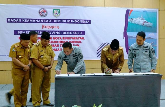 Perjanjian ini ditandatangani oleh Kepala Bakamla RI, Laksamana Madya TNI Irvansyah, dan Pelaksana Tugas (Plt) Gubernur Bengkulu, Rosjonsyah.