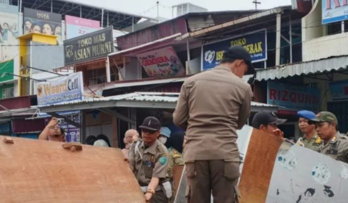 Penertiban tersebut melibatkan tim gabungan yang terdiri atas Satpol PP, Disperdagrin, Dinas Pemadam Kebakaran, Badan Pendapatan Daerah, Dinas Sosial, Dinas Pekerjaan Umum, serta sejumlah organisasi perangkat daerah lainnya.