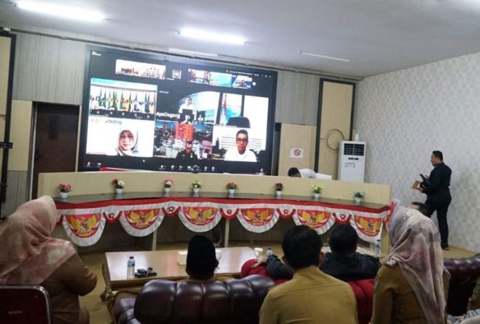 CoverPublik.com – Penjabat (Pj) Walikota Bengkulu Arif Gunadi didampingi Pj Sekda Eko Agusrianto, Asisten II Setda Kota Bengkulu Sehmi, Staf Ahli Bidang Pembangunan, Ekonomi dan Keuangan Rosminiarty, Plt Kadinkes Joni Hariadi serta para pejabat dilingkup Pemkot Bengkulu mengikuti Rapat Koordinasi (Rakor) secara zoom meeting bersama Menteri Dalam Negeri.