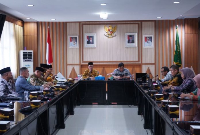 Rapat ini dipimpin oleh Asisten III Sekretariat Daerah Provinsi Bengkulu, Nandar Munadi, dan turut dihadiri oleh Asisten I, Khairil Anwar, Inspektur Inspektorat Bengkulu, Heru Susanto, serta perwakilan organisasi perangkat daerah (OPD) terkait.