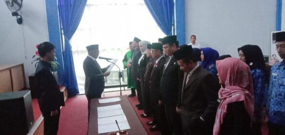 Coverpublik.com – Pemerintah Kota (Pemkot) Bengkulu kembali melakukan penyegaran dibeberapa jabatan dengan melakukan rotasi, diantaranya jabatan eselon III (7) dan eselon IV (13). Pelantikan dilakukan Asisten III Tony Elfian didampingi Kepala Badan Kepegawaian dan Pengembangan SDM Achrawi, Inspektur Inspektorat Eka Rika Rino, Kepala DKP Tarzan Naidi di aula BKPSDM, Rabu (5/7).
