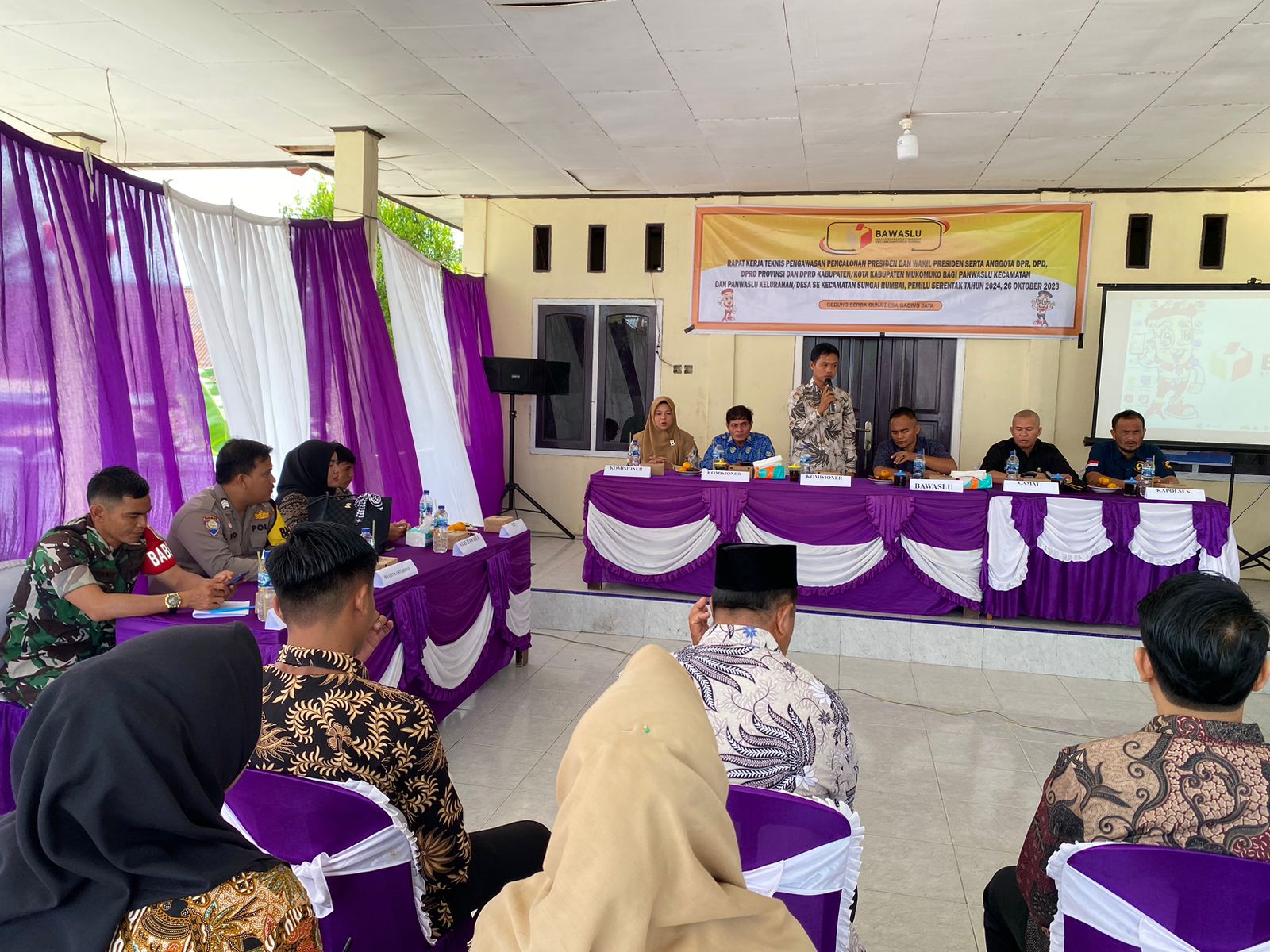 Hal tersebut dismpaikan Ketua Panwascam Penarik Kabupaten Mukomuko pada saat kegiatan Rapat Kerja Teknis Pengawasan Tahapan Pencalonan Presiden dab Wakil Presiden , Anggota DPR, DPD serta DPRD Mukomuko di Kecamatan Penarik di selenggarakan oleh Panwascam Kota Mukomuko di Gedung Serbaguna Desa Lubuk Mukti Kecamatan Penarik Kab Mukomuko. Kamis (26/10/2023).