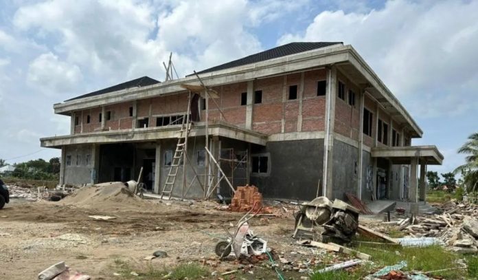 Kondisi bangunan gedung Pengadilan Agama Kabupaten Mukomuko yang tidak selesai dikerjakan akibat putus kontrak