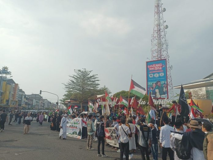 PII pada Pawai dan Aksi Damai Bela Palestina Dari Aliansi Bengkulu Aksi Damai (BADAI) untuk Al-AQSHA Jilid ke-2 di Simpang Lima Kota Bengkulu. Jum’at (20/10/2023). Dok: Restu Edi