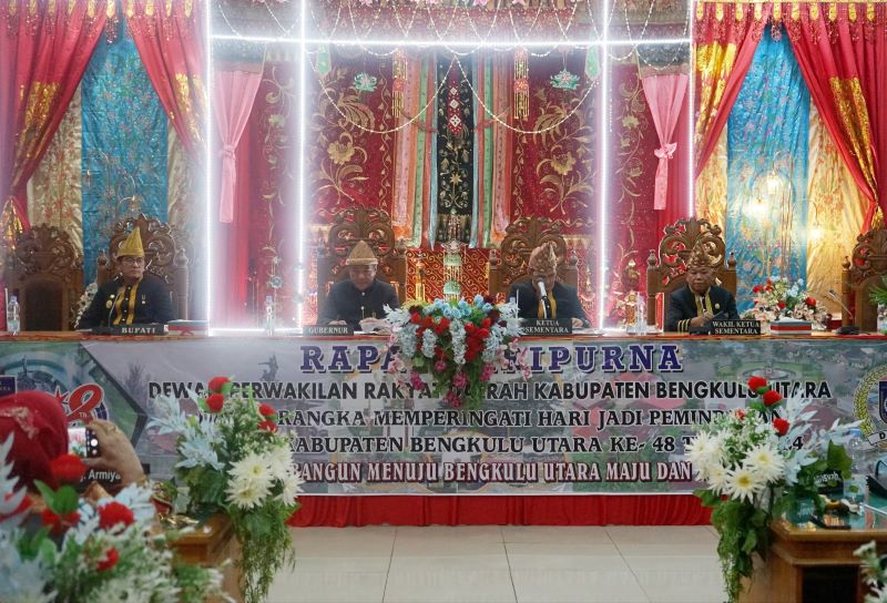 CoverPublik.com – Pelaksana Tugas (Plt) Gubernur Bengkulu, Rosjonsyah, menghadiri Rapat Paripurna Istimewa dalam rangka memperingati HUT ke-48 Kota Argamakmur yang berlangsung di ruang rapat paripurna DPRD Bengkulu Utara, Selasa (8/10).