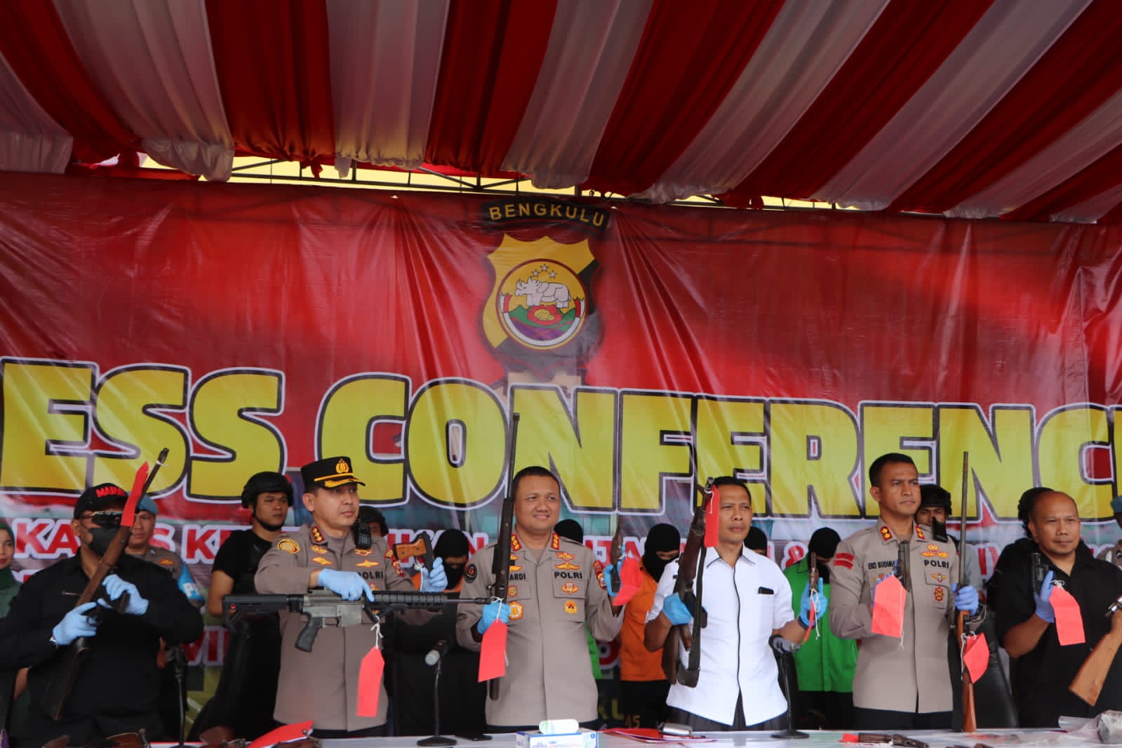 hal tersebut diungkapkan oleh Kabid Humas Polda Bengkulu Kombes Pol Anuardi, S.Ik., M.Si., didampingi Wadir Reskrimum Polda Bengkulu AKBP Pol Andjas, Kabag Wasidik Reskrimsus AKBP Suparman, Kapolresta Bengkulu Kombes Pol Aris Sulistyono, S.H, serta Kasatgas Wilayah Bengkulu Densus 88 / AT saat Press Conference sore ini (04/04/23) di Lapangan Mapolda Bengkulu.