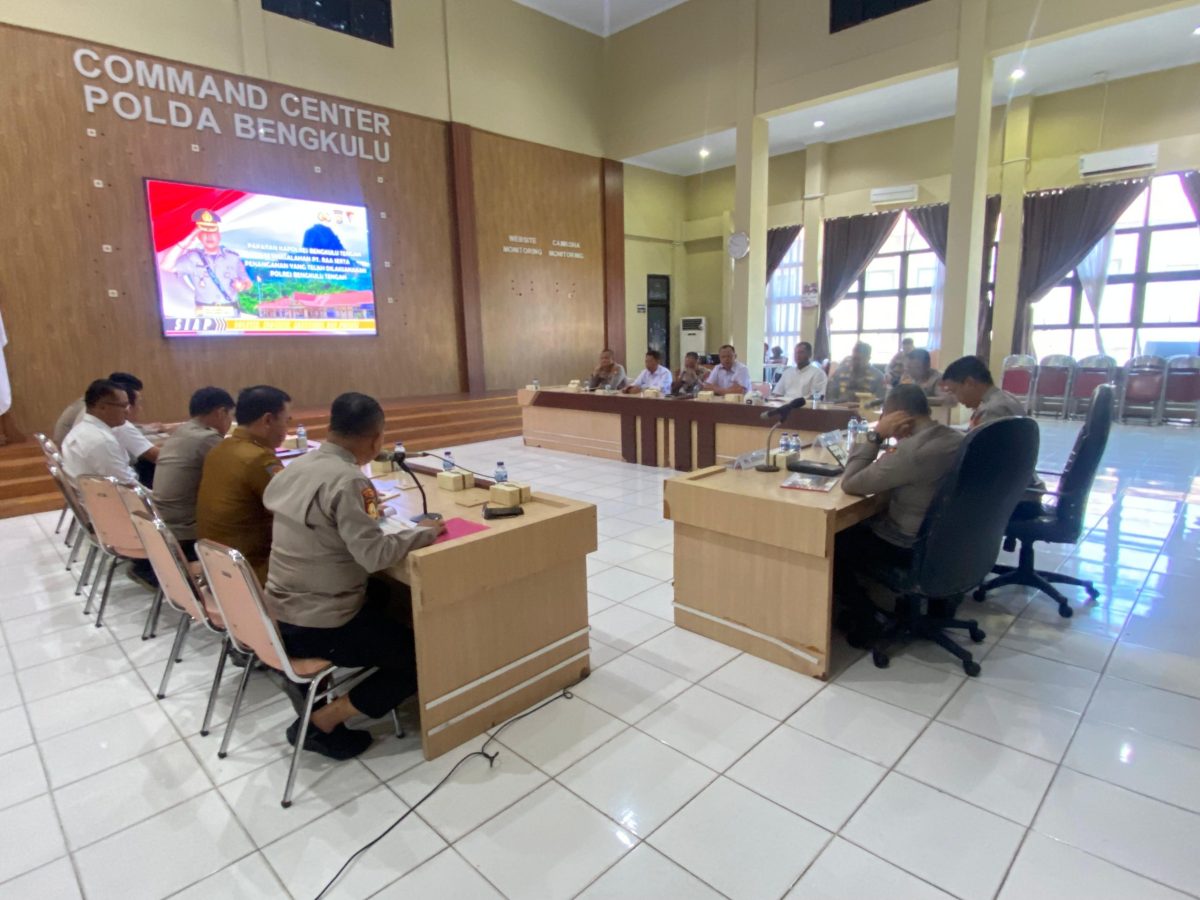 Rapat dipimpin Karo Ops Polda Bengkulu dan dihadiri Plt Irwasda, Dirintelkam, Dirbinmas, Dirreskrimum, Dirreskrimsus, Dirpamobvit, Kabidkum, Kapolres Bengkulu Tengah, Wakil Bupati Bengkulu Tengah, serta pejabat utama Polres setempat.