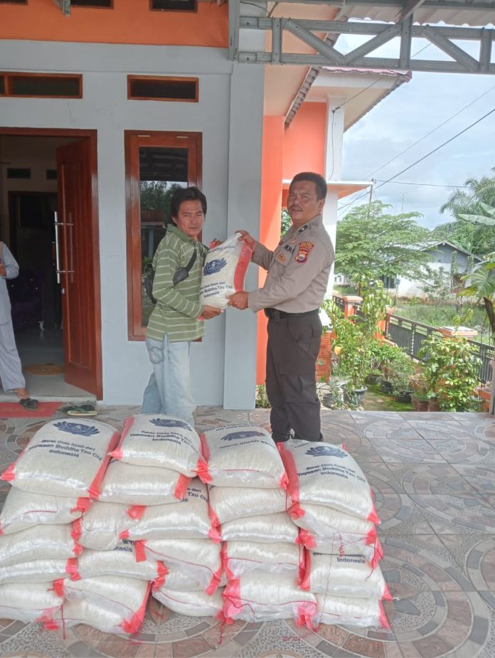 Coverpublik.com – Wujud kepedulian terhadap warga yang terdampak banjir, Anggota Polsek Karang Tinggi Polres Bengkulu Tengah (Benteng) Polda Bengkulu siang hari kemarin Kamis (13/10) melakukan pembagian bantuan sosial beras polri di Desa Taba Terunjam Kecamatan Karang Tinggi.