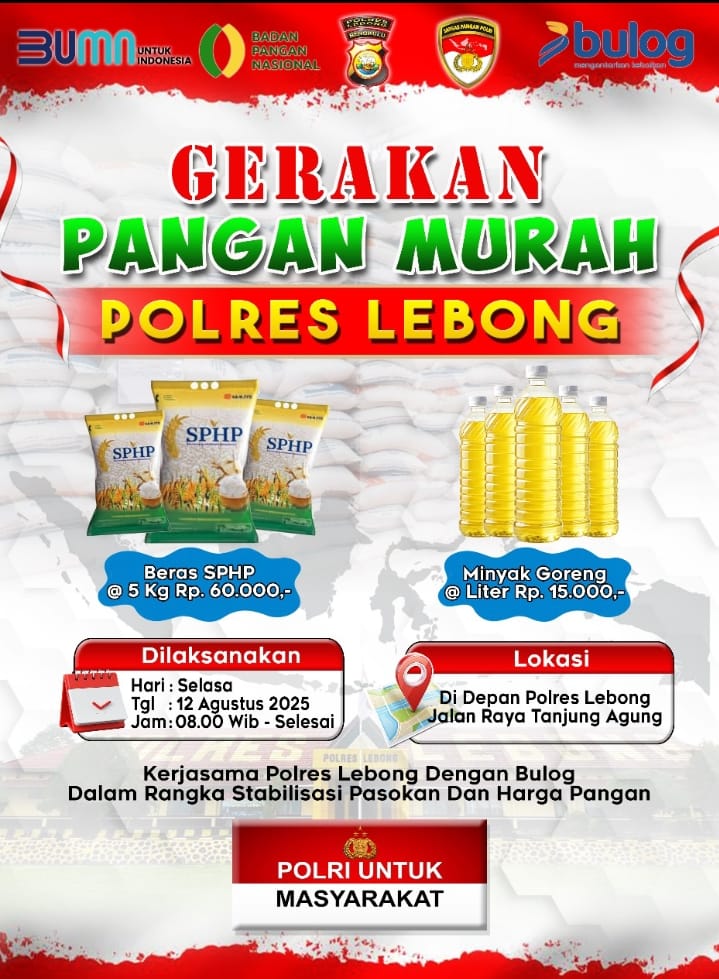 Dengan adanya Gerakan Pangan Murah ini, Polres Lebong bersama Bulog dan Badan Pangan Nasional berharap masyarakat dapat merasakan langsung manfaat harga pangan yang lebih terjangkau sekaligus menjaga stabilitas pasokan di wilayah.
