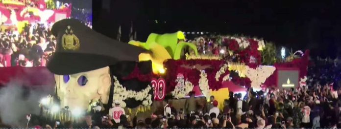 Truk karnaval Polri juga menampilkan nuansa Nusantara dengan busana prajurit Majapahit, musik Baleganjur khas Bali, hingga ornamen replika kepala polisi dengan topi dinas di bagian depan. Sementara itu, elemen padi, jagung, tebu, dan bawang putih menggambarkan dukungan pada program ketahanan pangan nasional.