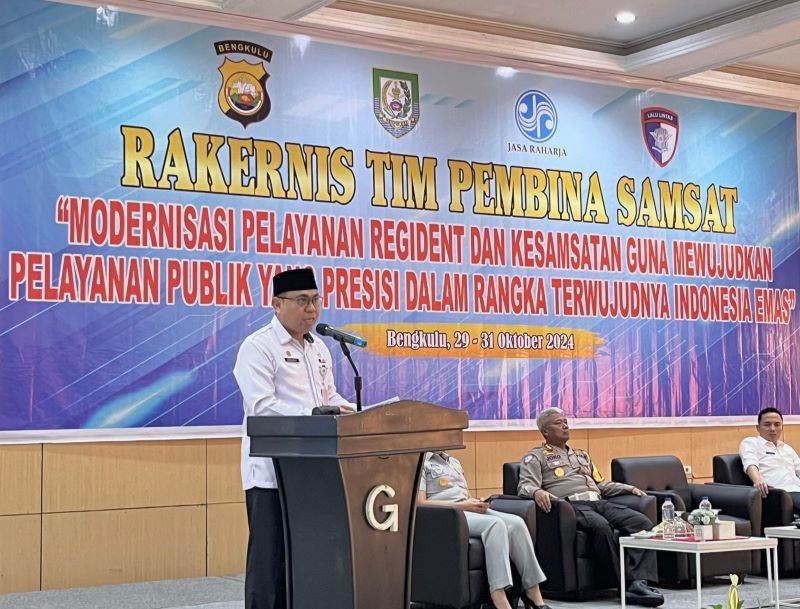 CoverPublik.com – Dengan tema Modernisasi Pelayanan Regident dan Kesamsatan untuk Pelayanan Publik yang Responsif Menuju Indonesia Emas, Rapat Kerja Nasional (Rakernas) Tim Pembina Samsat dilaksanakan di Hotel Grage Bengkulu pada Rabu, 30 Oktober 2024.