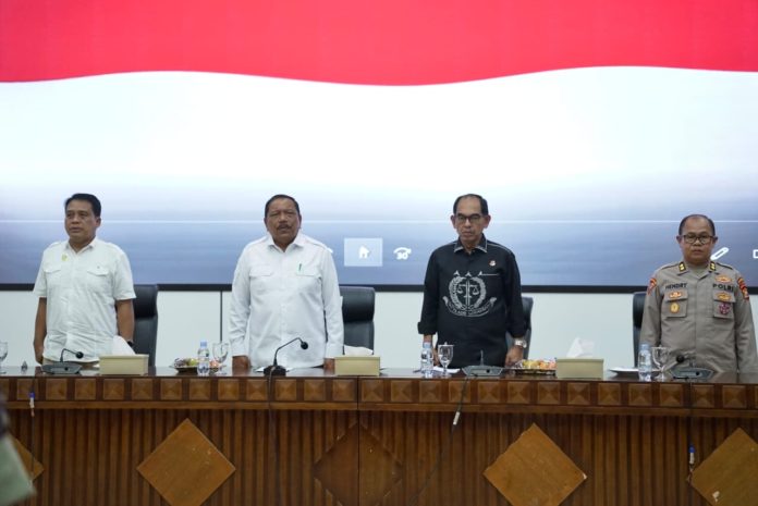 Rapat koordinasi yang melibatkan Forum Koordinasi Pimpinan Daerah (Forkopimda) serta perusahaan pertambangan dan perkebunan, yang digelar di Aula Merah Putih Kantor Gubernur Bengkulu, Jumat (19/12). (Foto: Syafri Yantoni/CoverPublik.com)
