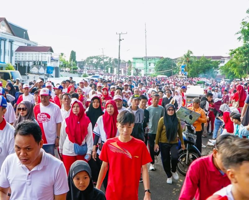 Kemeriahan terasa sejak pagi, dengan antusiasme masyarakat yang mengikuti rute jalan sehat dari Gedung Daerah menuju Jalan Pintu Batu dan kembali ke titik awal. Ribuan peserta tampak semangat mengikuti kegiatan yang mengusung tema kebersamaan dan semangat nasionalisme ini.