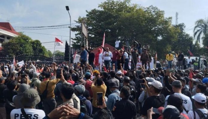 Pati, CoverPublik.com – Sekitar 1.000 warga Kabupaten Pati, Jawa Tengah, menggelar aksi unjuk rasa menuntut Bupati Pati Sudewo mengundurkan diri dari jabatannya. Aksi digelar di kawasan Alun-alun Kota Pati, tepat di depan pintu masuk Pendopo Kabupaten, Rabu (13/8).