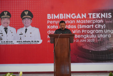 Bengkulu Utara,Coverpublik.com – – Pemerintah Kabupaten (Pemkab) Bengkulu Utara (BU) bekerja sama dengan Kementerian Komunikasi dan Informatika (Kemkominfo) Republik Indonesia (RI) menggelar Bimbingan Teknis (Bimtek) pertama terkait penyusunan Masterplan Kota Cerdas “Smart City” dan Quick Win Program Unggulan Kabupaten BU yang diselenggarakan di ruang pola Setdakab Kabupaten BU, Senin (20/6/2022).