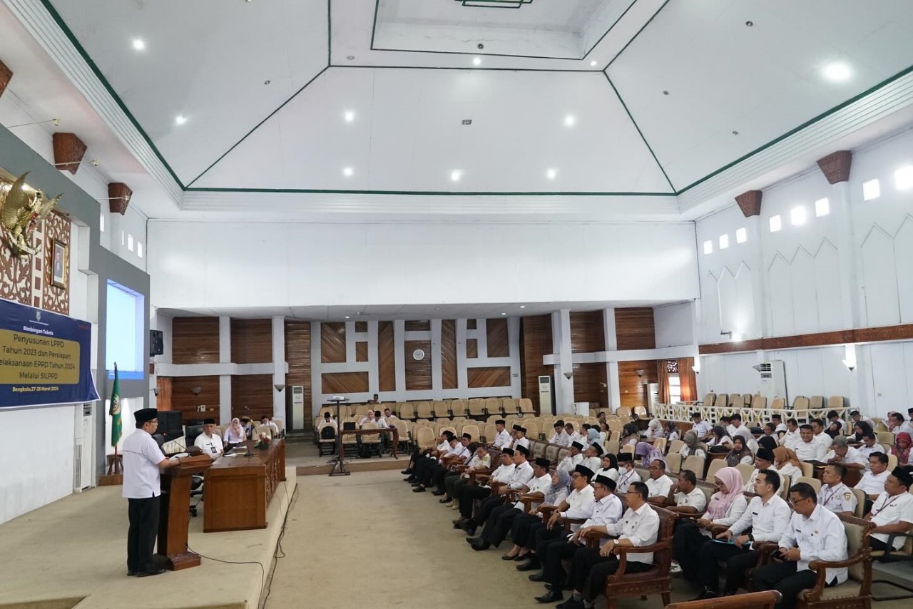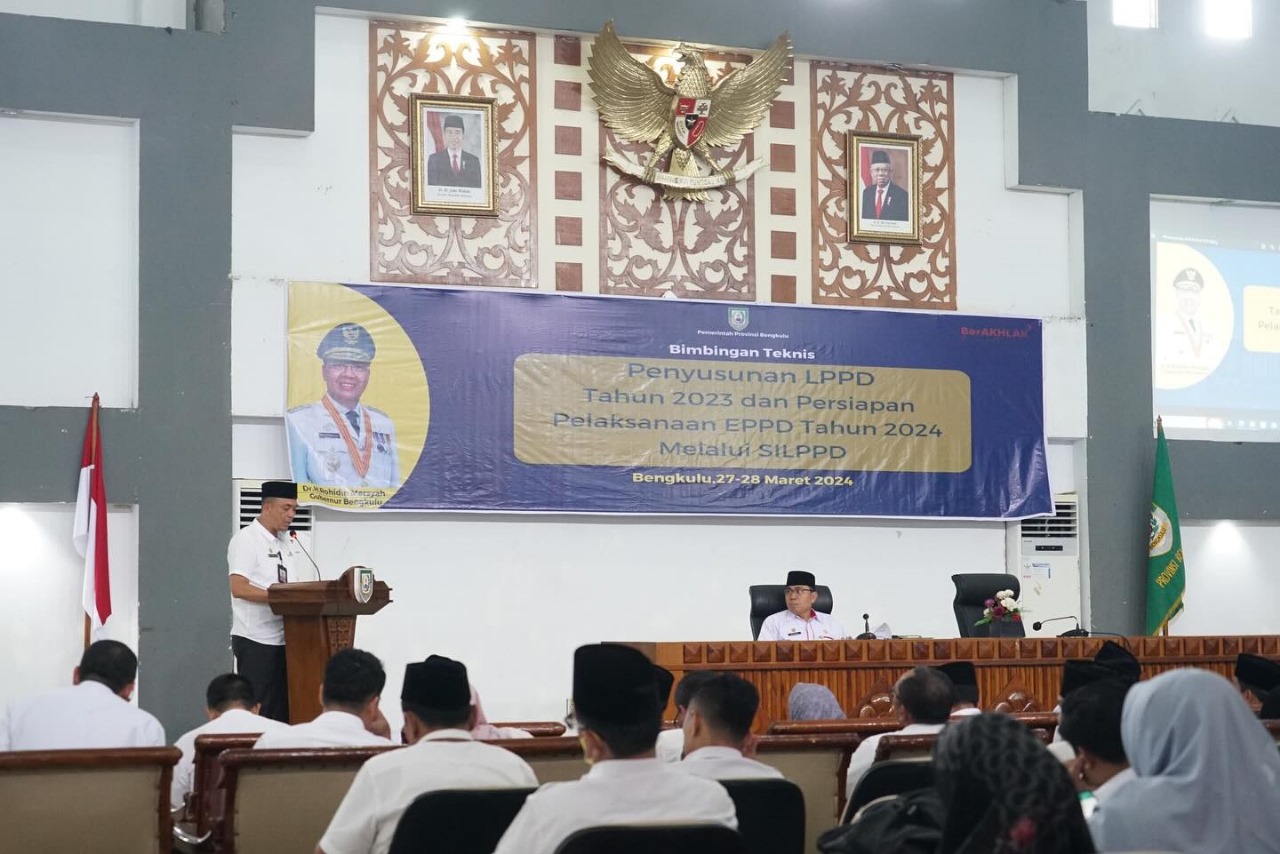 Coverpublik.com – Asisten Bidang Pemerintahan dan Pembangunan Setda Provinsi Bengkulu Khairil Anwar membuka Bimbingan Teknis Penyusunan Laporan Penyelenggaraan Pemerintah Daerah (LPPD) tahun 2023 dan Persiapan Pelaksanaan EPPD Tahun 2024 melalui Sistem Informasi Laporan Penyelenggaraan Pemerintah Daerah (SILPPD) di Gedung Serba Guna Pemda Provinsi Bengkulu, Rabu (27/3).
