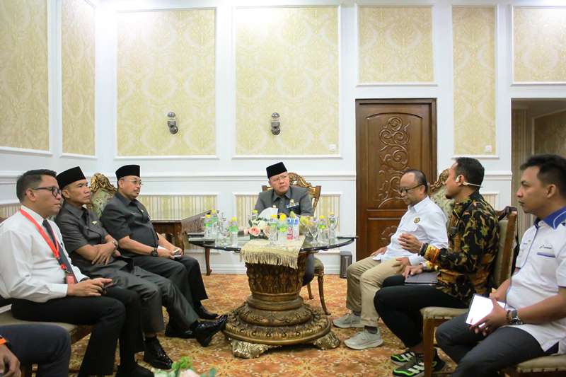 CoverPublik.com  – Region Manager Retail Sales Sumbagsel, Awan Raharjo, bersama Komite BPH Migas, Halim, audiensi dengan Gubernur Bengkulu, Rohidin Mersyah, di Balai Raya Semarak.