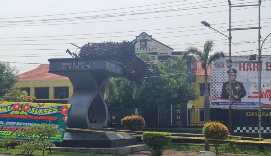 Bengkulu, Coverpublik.com – Tugu keselamatan berbahan knalpot bising didepan Polda Bengkulu yang dibangun diera Kapolda Bengkulu dijabat oleh Irjen Pol (Purn) Drs M Ghufron MM M.Si, roboh, Jumat (22/07/2022).
