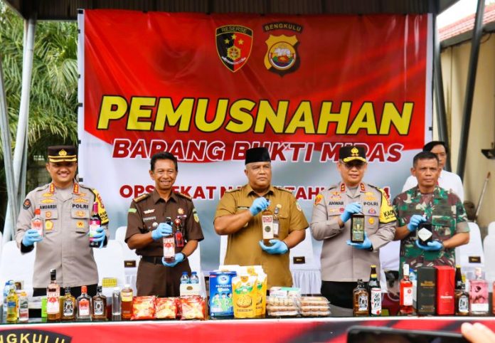 Sebagai penutup rangkaian kegiatan, Polda Bengkulu juga menggelar pemusnahan ribuan botol minuman keras yang merupakan hasil dari Operasi Pekat Nala II Tahun 2024.