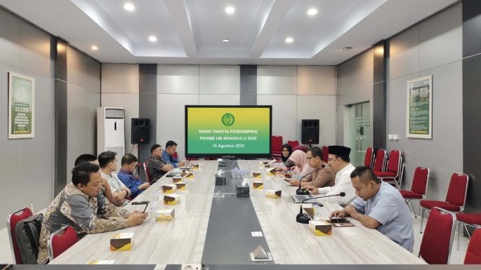 Bengkulu, CoverPublik.com – Panitia pelaksana Pengenalan Kehidupan Kampus bagi Mahasiswa Baru (PKKMB) Universitas Muhammadiyah (UM) Bengkulu menggelar rapat koordinasi di Ruang Rapat Kampus 1 UM Bengkulu, Jumat (15/8). Rapat tersebut mematangkan konsep acara, pembagian tugas, serta dukungan pendamping dari unsur dosen untuk kelancaran kegiatan.