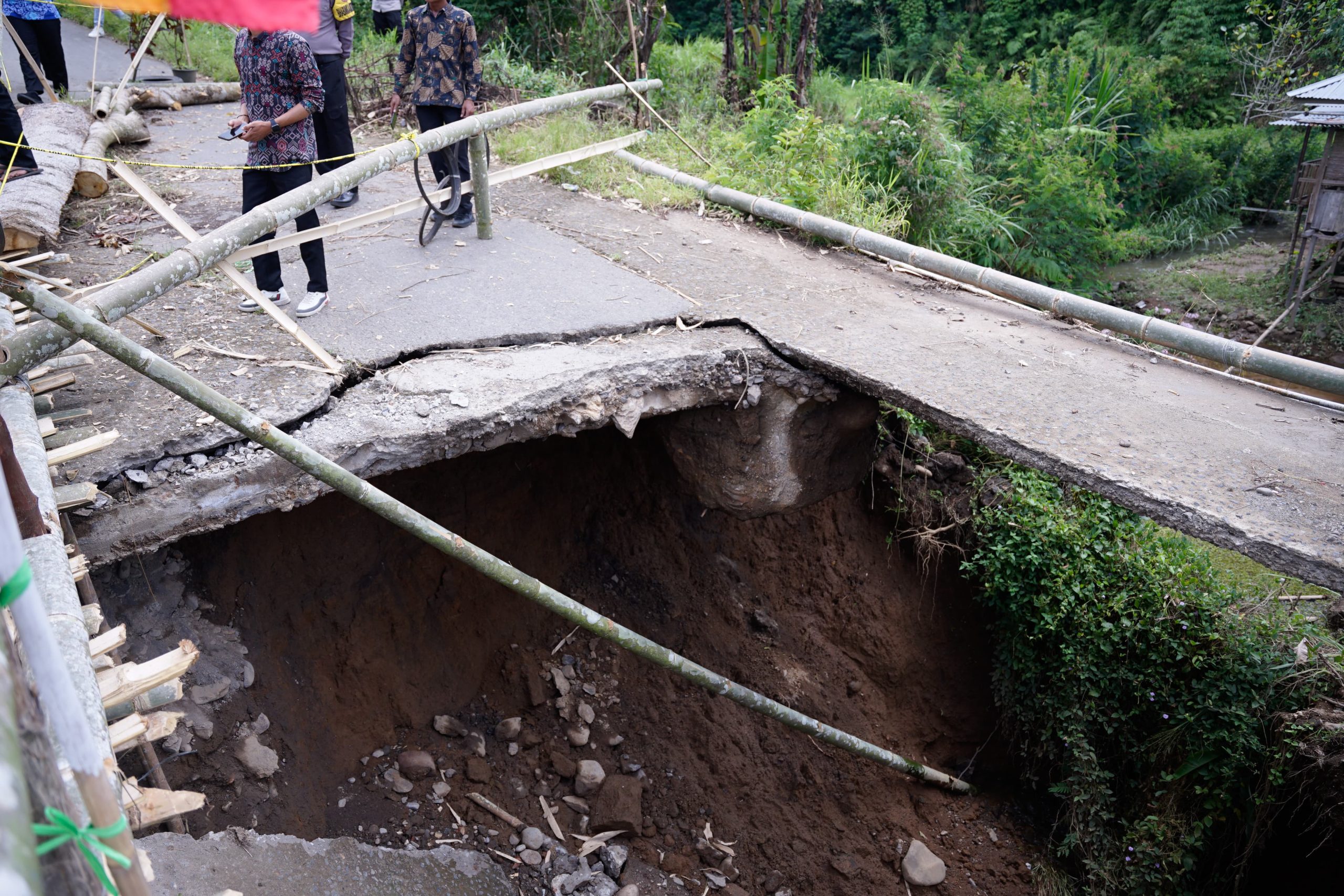 Jembatan yang berada di sekitar musala setempat tersebut mengalami kerusakan cukup parah sehingga mengganggu akses masyarakat setempat.