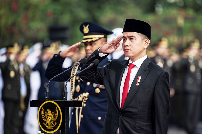 CoverPublik.com – Mewakili Presiden Prabowo Subianto yang tengah melakukan kunjungan kerja ke beberapa negara, Wakil Presiden Gibran Rakabuming menjadi Inspektur Upacara Ziarah Nasional dalam rangka Peringatan Hari Pahlawan di Taman Makam Pahlawan Nasional Utama Kalibata, Jakarta, Minggu (10/11/2024).