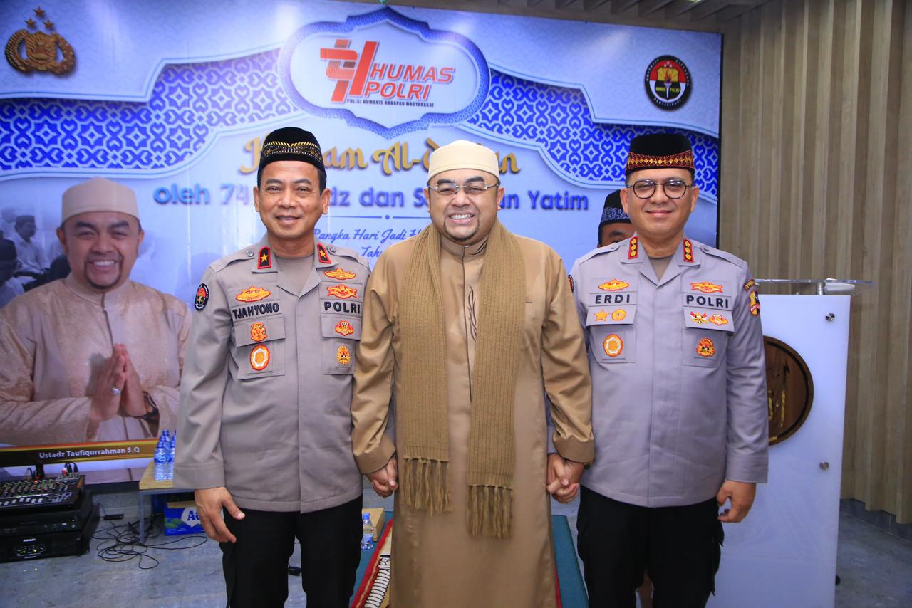 “Alhamdulillah hari jadi Divisi Humas Polri yang ke-74 ini dawali dengan kegiatan yakg sangat positif dengan diadakannya khotmul Qur’an serra santunan yatim sebanyak 100 anak,” ujarnya, Senin (27/10/25).
